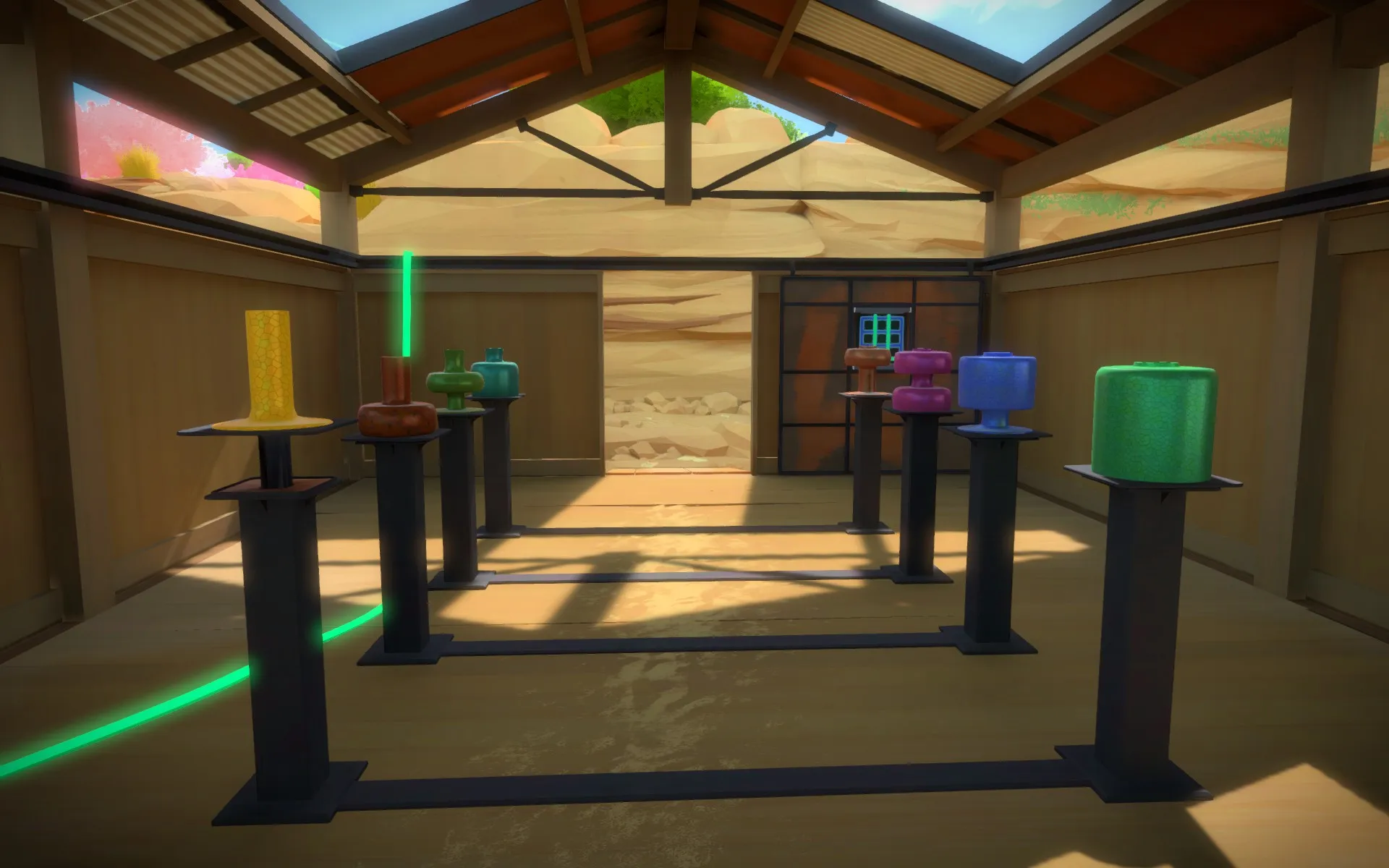 Let’s start with the most obvious: the game is drop-dead gorgeous. Color is used well and the island feels equal parts alive and abandoned. The developers clearly took great care in the design of every aspect of the island. Everything from the foliage to the architecture serves a purpose, usually to build and inform the theme of nearby puzzles. Atmosphere plays a large role in puzzle design and vice versa. There’s a wonderful moment about 30 minutes into the game as you’re solving a series of paired panels. Your drawing on one is mirrored on the other and solutions must satisfy both panels simultaneously. As you walk down a path from the first section towards the second, you’re flanked by strangely shaped pairs of vases. On first pass they’re fairly unremarkable, but nothing in the game is placed on accident. The vases are inverses of each other, strengthening the theme of the mirrored panels.