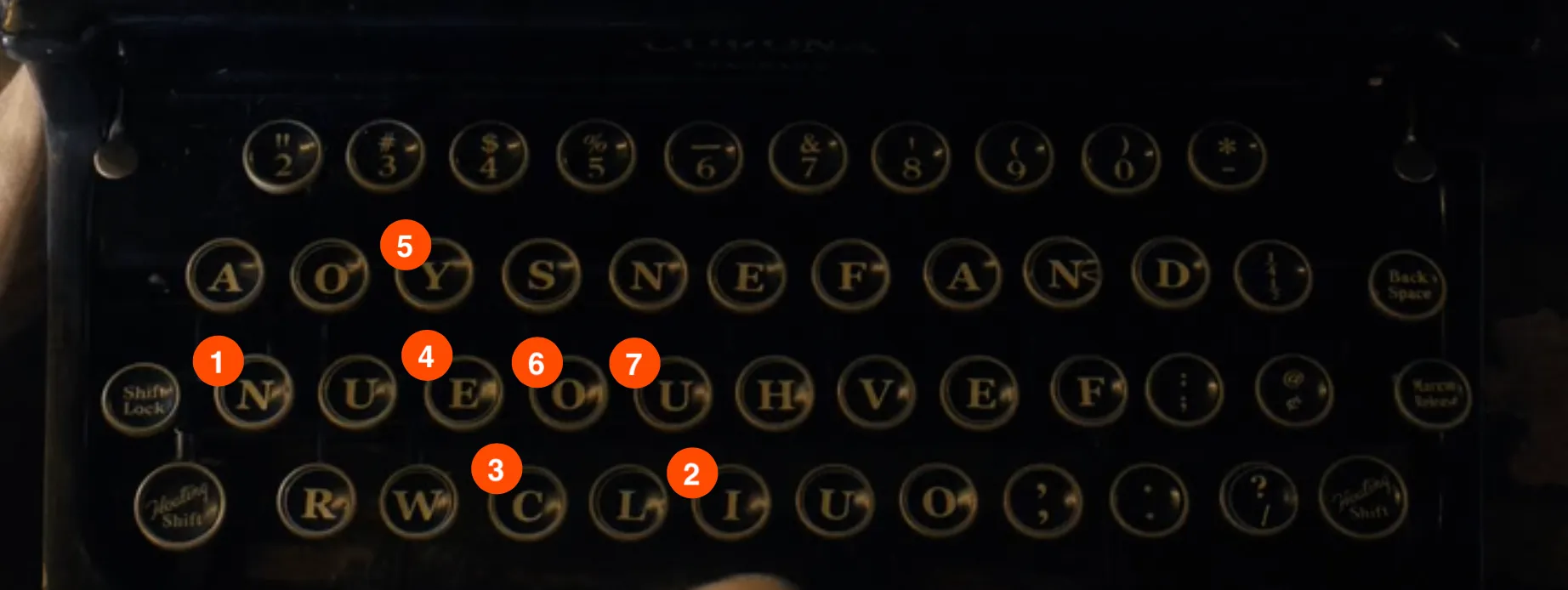 The typewriter that Grace sells Edger has its letters all mixed up. To find the answer, go alphabetically through where you know the keys should be.
