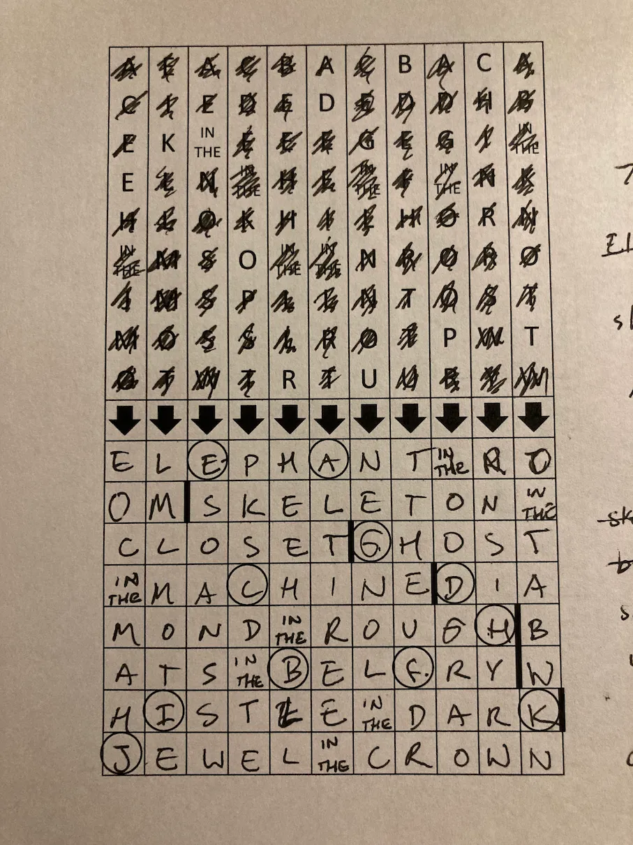 Also, “we” throughout this post refers to myself and my stalwart editor / puzzle guide / partner extraordinaire, Vicky, without whom this would not be possible.