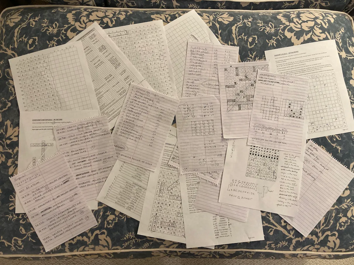 We encourage you to solve as much as you can! The puzzles are fun and will play to different strengths, so just because a prior one stumped you doesn’t mean you won’t have a stroke of brilliance on the next one. That said, we appreciated hints when we needed them and the goal here is to alleviate gatekeeping and frustration. We have done our best to lead a solver through several layers of hints. That way, you can choose your own difficulty level. Click through just a few hints that prompt your own “aha” moments and independent solutions, or go all the way to the solution to admire the puzzle-makers’ cleverness and trickery if you just can’t (or don’t want to) get there on your own.