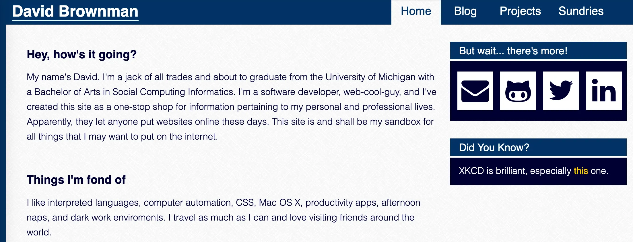 Since its inception in March 2013, my website (formerly known as davidbrownman.com) has gone through a few major revisions. It was time for another.