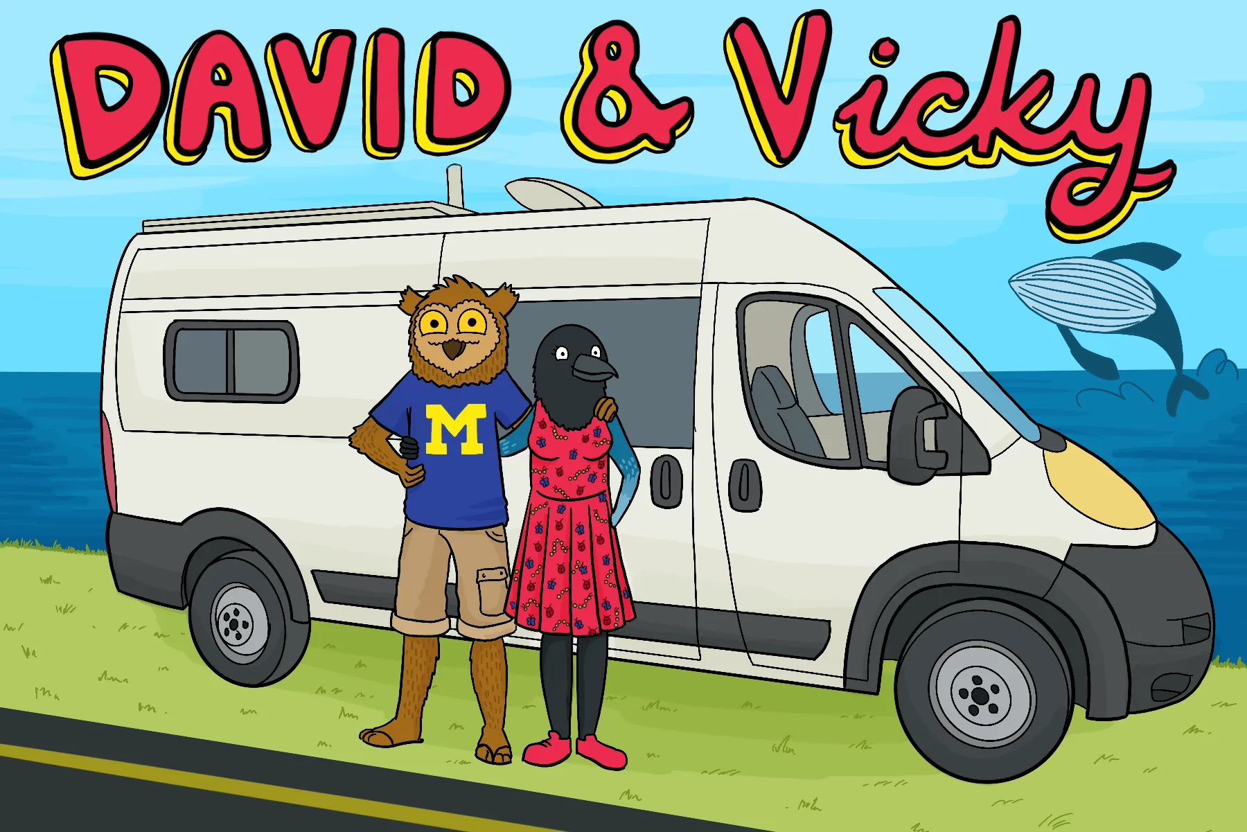 Fun fact: we ended up liking with this so much that I commissioned a friend to draw us and our van as characters from the show as a gift for Vicky (created by the incredible Meggie Ramm):