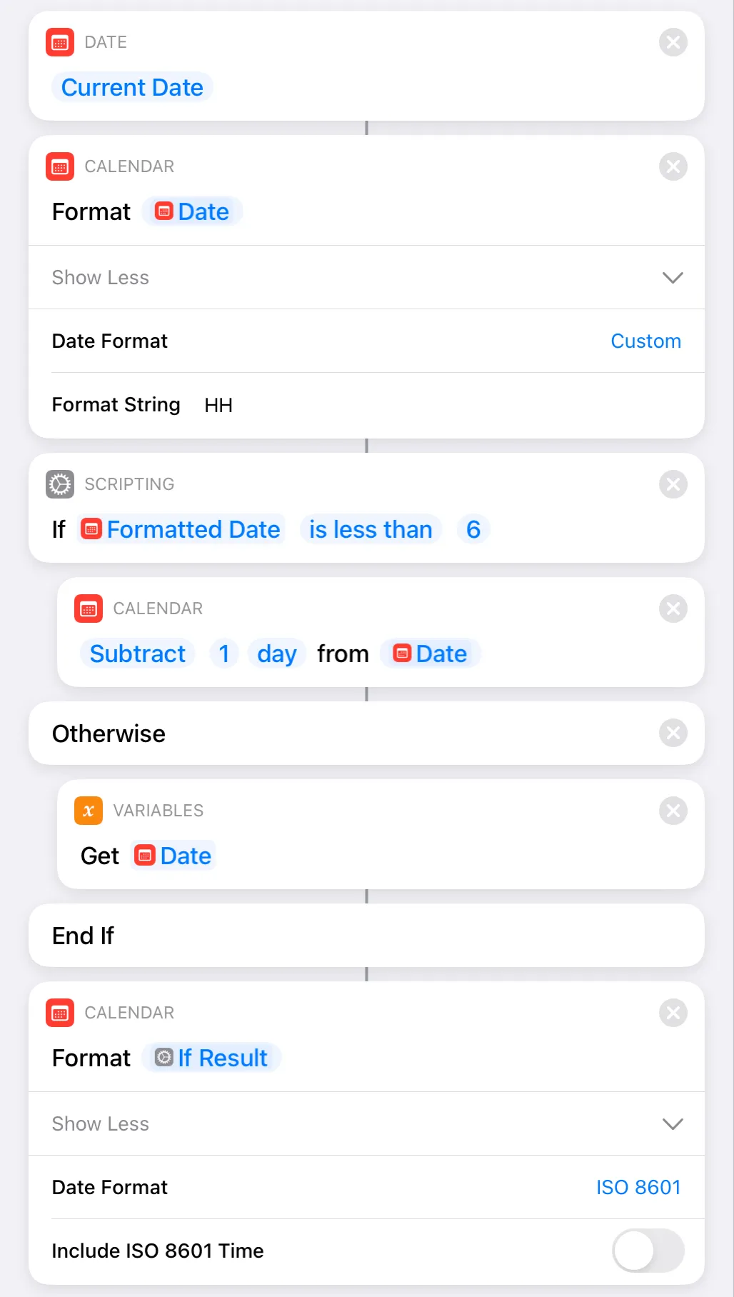 const dateStr = `${now.getFullYear()}-${paddedNumber( // js months are the worst and are the only thing here that is 0-indexed now.getMonth() + 1,)}-${paddedNumber(now.getDate())}`;I’ve got a similar function for use in iOS Shortcuts: