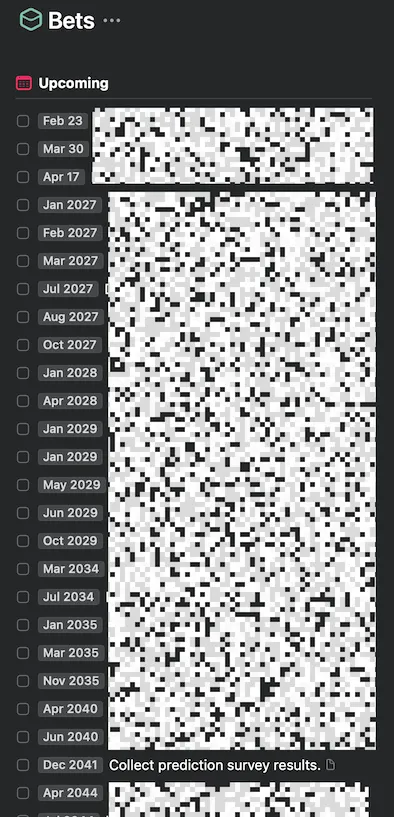 Lucky for me, I love big bets (and I cannot lie). I regularly set myself reminders for 10+ years in the future to see how something turned out. I’ve got a ton of them stashed away in Things: